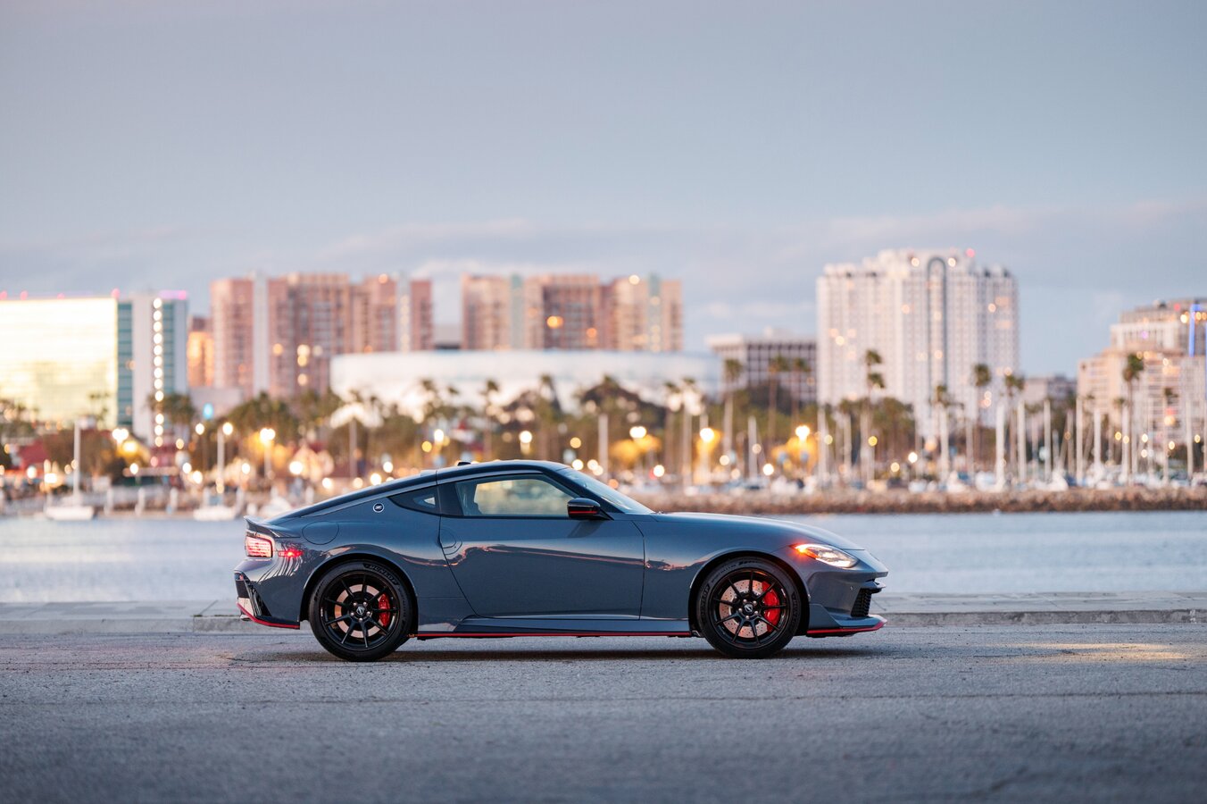 Z zewnątrz model stał się nieco łagodniejszy: przeprojektowany przedni zderzak i nowy grill z poziomymi listwami nie tylko odświeżyły wygląd, ale także poprawiły aerodynamikę. Gama kolorów została rozszerzona o odcień Shinkai, inspirowany pierwszymi generacjami Z. Opcjonalnie dostępne są 19-calowe kute felgi, podczas gdy wersja Nismo zachowała agresywny, charakterystyczny pakiet aerodynamiczny.