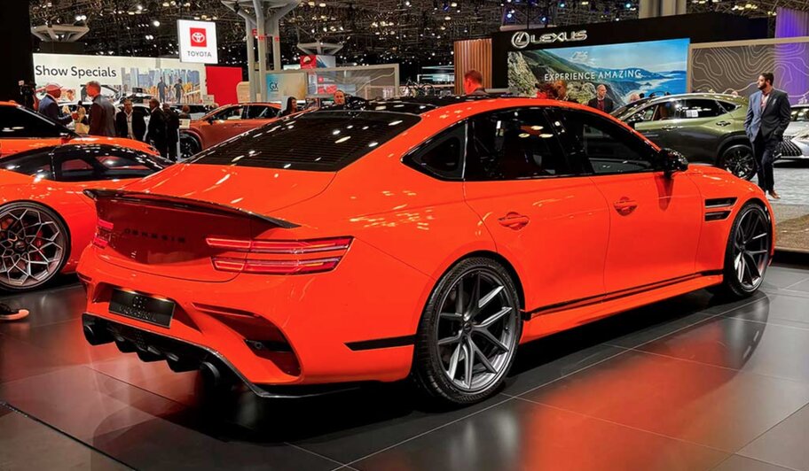 Z zewnątrz G80 Magma Special wyraźnie różni się od standardowego sedana. Samochód otrzymał przeprojektowane zderzaki, poszerzone nadkola, zoptymalizowane elementy aerodynamiczne, 21-calowe matowo-szare felgi oraz liczne wstawki z włókna węglowego. Całość dopełnia tylny spojler typu „ducktail”, a firmowy pomarańczowy lakier Magma w połączeniu z czarnymi akcentami podkreśla wyjątkowy charakter wersji.