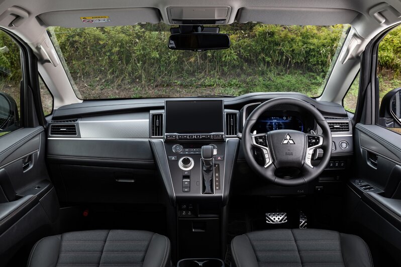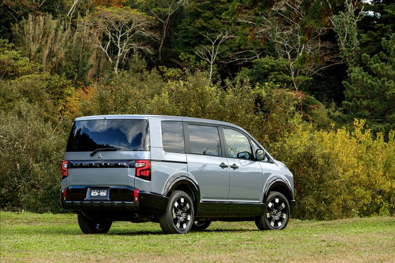 Zmiany stylistyczne mają charakter ewolucyjny. Przedni grill stracił zestaw chromowanych listew na rzecz pojedynczego elementu w ciemnym chromie, przeprojektowano zderzaki oraz nakładki nadkoli, a z tyłu pojawił się czarny panel z dużym napisem modelu. Delica stała się o 20 mm szersza — do 1815 mm, zachowując dotychczasową długość, wysokość i rozstaw osi. Prześwit 185 mm oraz nowe 18-calowe koła podkreślają jej terenowy charakter.