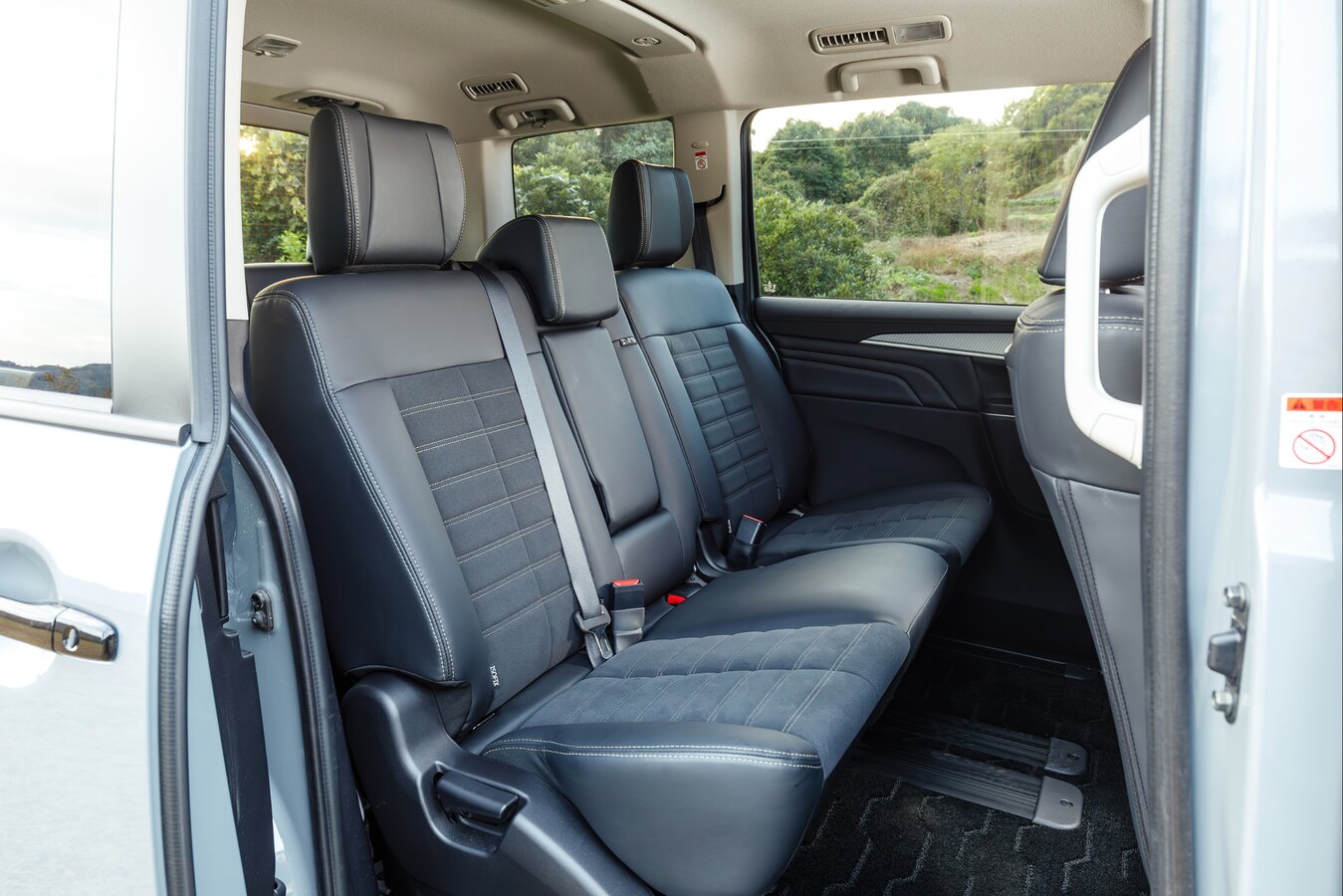 We wnętrzu zmiany są bardziej zauważalne. Już w standardzie montowany jest 8-calowy cyfrowy zestaw wskaźników, a imitacja drewna ustąpiła miejsca stonowanym, ciemnoszarym wstawkom. Pojawiły się gniazda USB-C oraz nowe opcje tapicerki foteli, w tym wodoodporna okładzina imitująca zamsz. Układ kabiny nadal może być siedmio- lub ośmiomiejscowy, a lista wyposażenia obejmuje nowoczesne systemy wspomagania kierowcy.