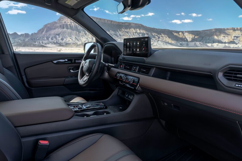 Znacznie większe zmiany zaszły we wnętrzu ośmioosobowego Pilota. Nawet podstawowe wersje mają teraz 10,2-calowy cyfrowy zestaw wskaźników, a ekran systemu multimedialnego urósł do 12,3 cala. Poprawiono szybkość działania i możliwości personalizacji interfejsu, dodano bezprzewodowe Apple CarPlay i Android Auto, usługi Google oraz hotspot Wi-Fi z obsługą 5G.