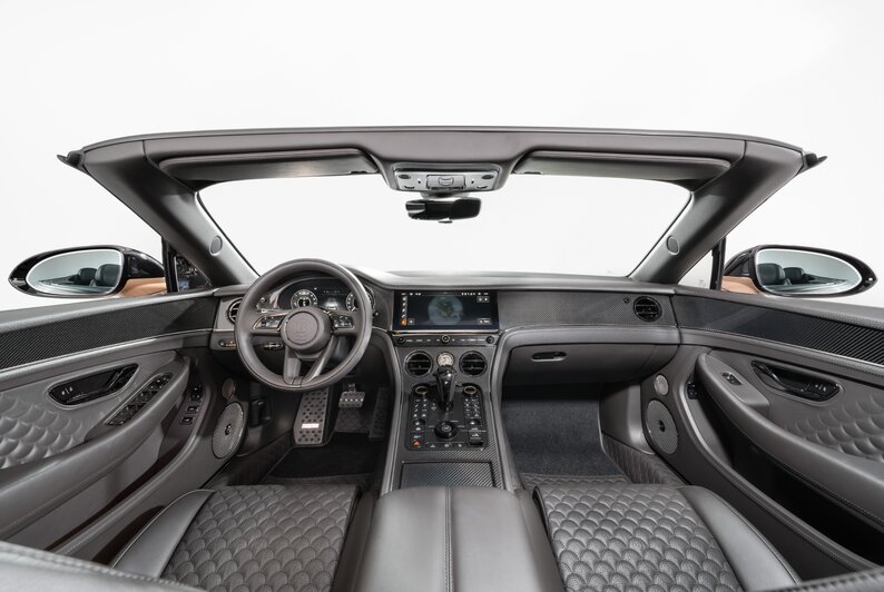 Już na pierwszy rzut oka modele zdradzają swoje pochodzenie. Karbonowy pakiet aerodynamiczny z nowym splitterem, dodatkowymi wlotami powietrza, kompaktowym spojlerem oraz rozbudowanym dyfuzorem całkowicie zmienia charakter auta. Aktywny układ wydechowy ze stali nierdzewnej z czterema końcówkami potęguje wrażenia dźwiękowe, a 22-calowe kute felgi Monoblock ZM dopełniają całości. Emblematy Bentley’a zostały usunięte — zamiast nich dominuje charakterystyczny, czarny styl Brabusa.