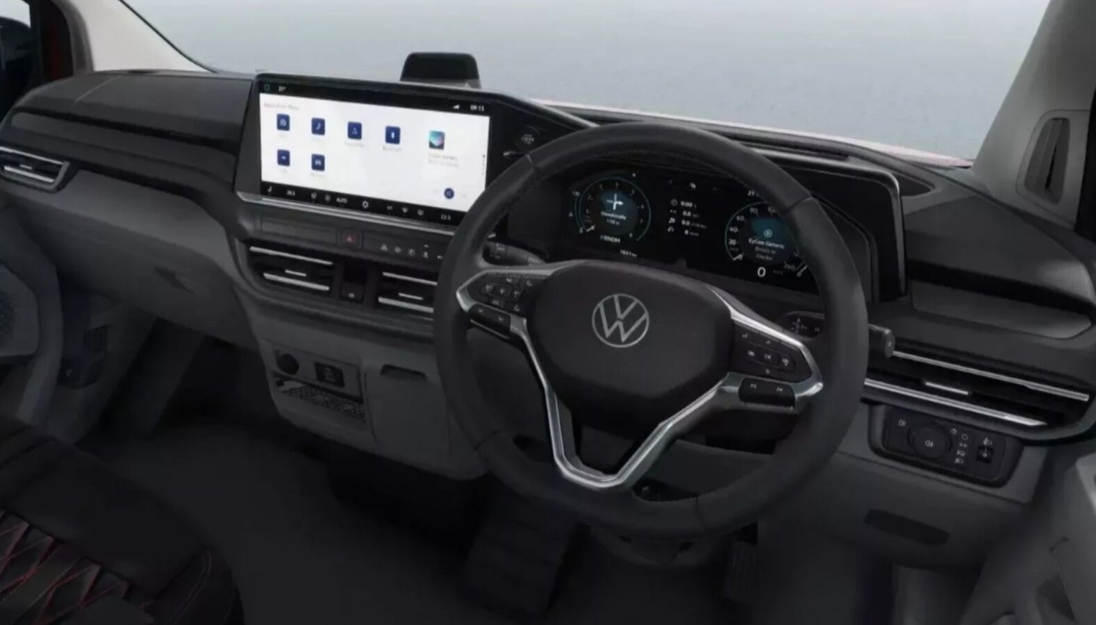 Również wnętrze zyskało sportowe akcenty. Kabinę wyposażono w nowe fotele obszyte ekoskórą z czerwoną nicią, podświetlane metalowe nakładki progowe, skórzaną kierownicę z podgrzewaniem oraz wykładzinę podłogową. Na liście wyposażenia znalazły się także kamera cofania, bezkluczykowy dostęp i dodatkowe elementy komfortu, wcześniej niespotykane w użytkowym vanie.